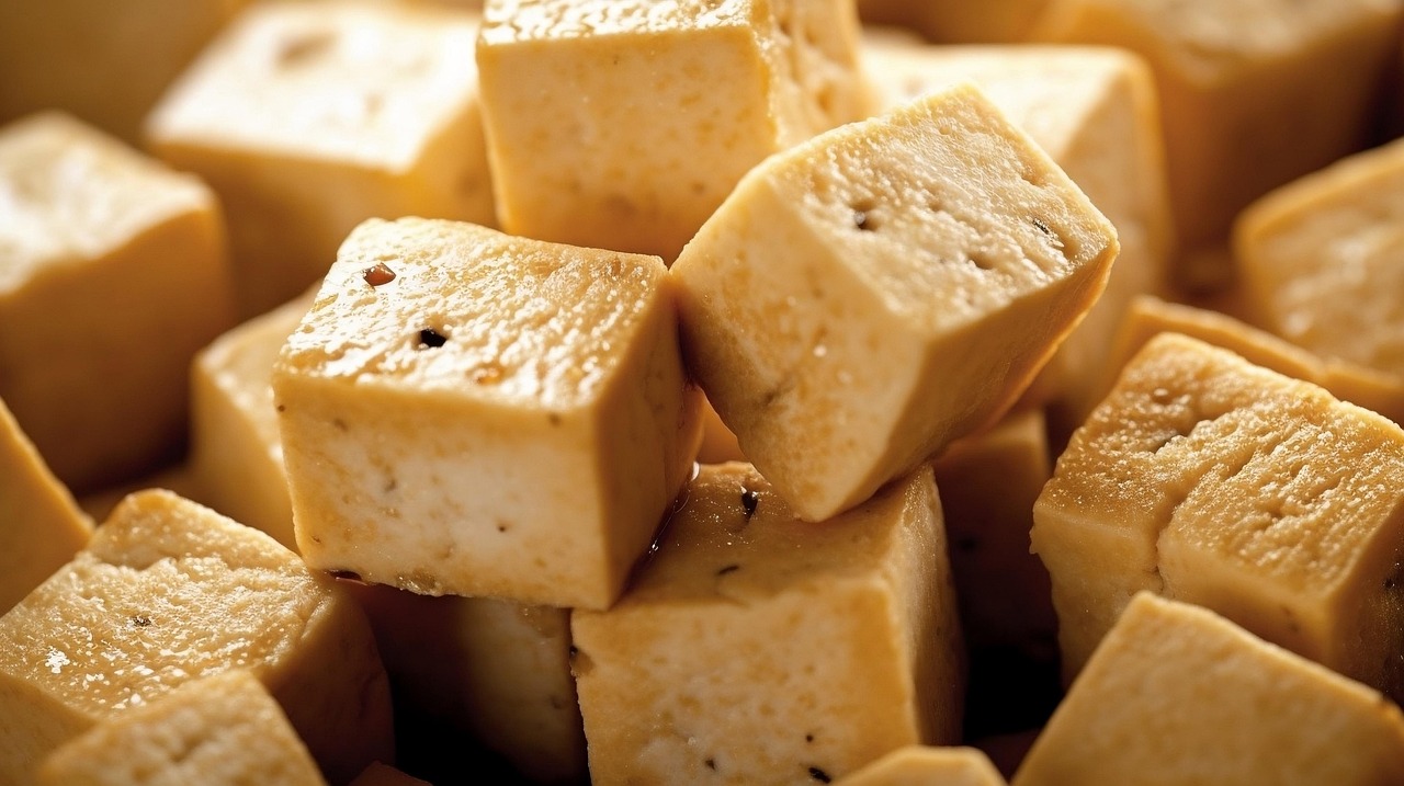 🍳 단단한 두부 1모, 감자 전분 1/2컵, 올리브 오일 약간, 간장 2큰술, 올리고당 1큰술, 다진 마늘 1작은술, 참깨 약간